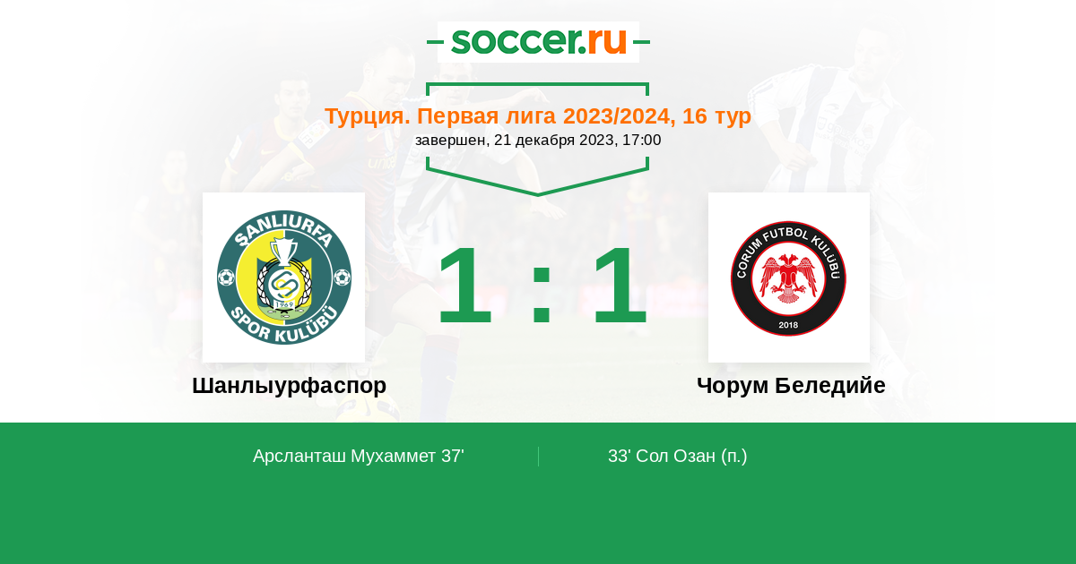 Протокол матча Шанлыурфаспор против Чорум Беледийе