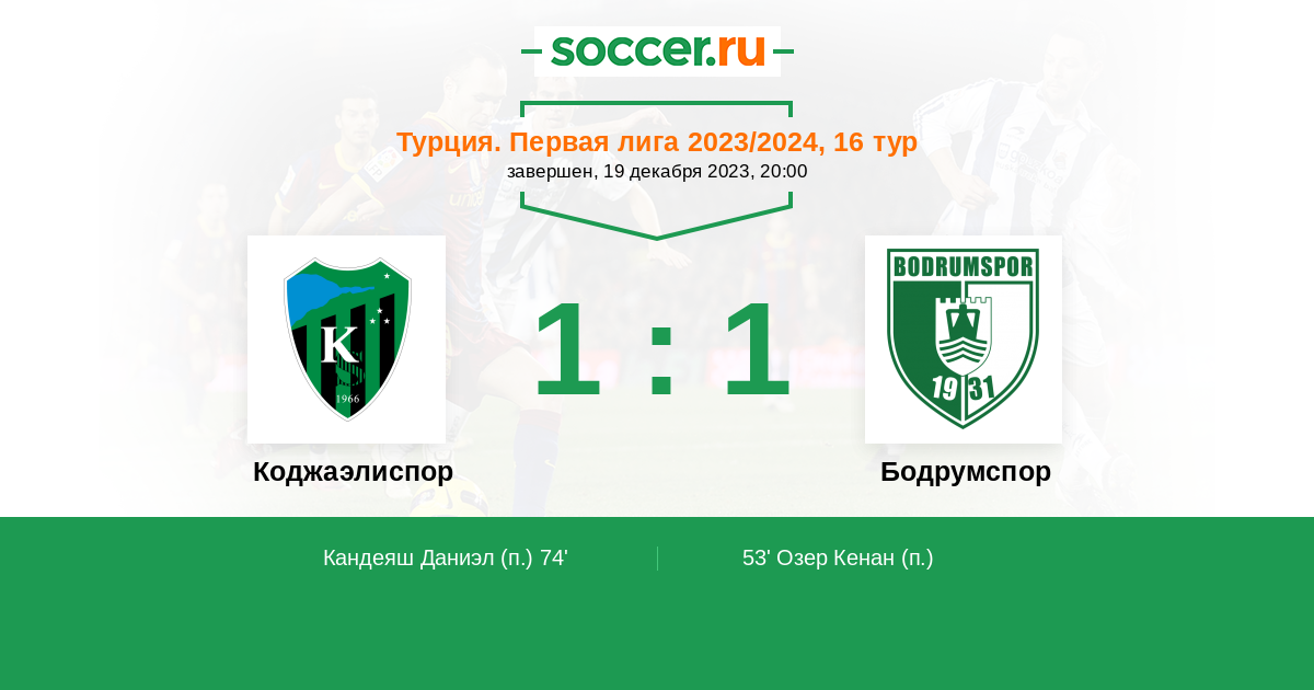 Протокол матча Коджаэлиспор против Бодрумспор