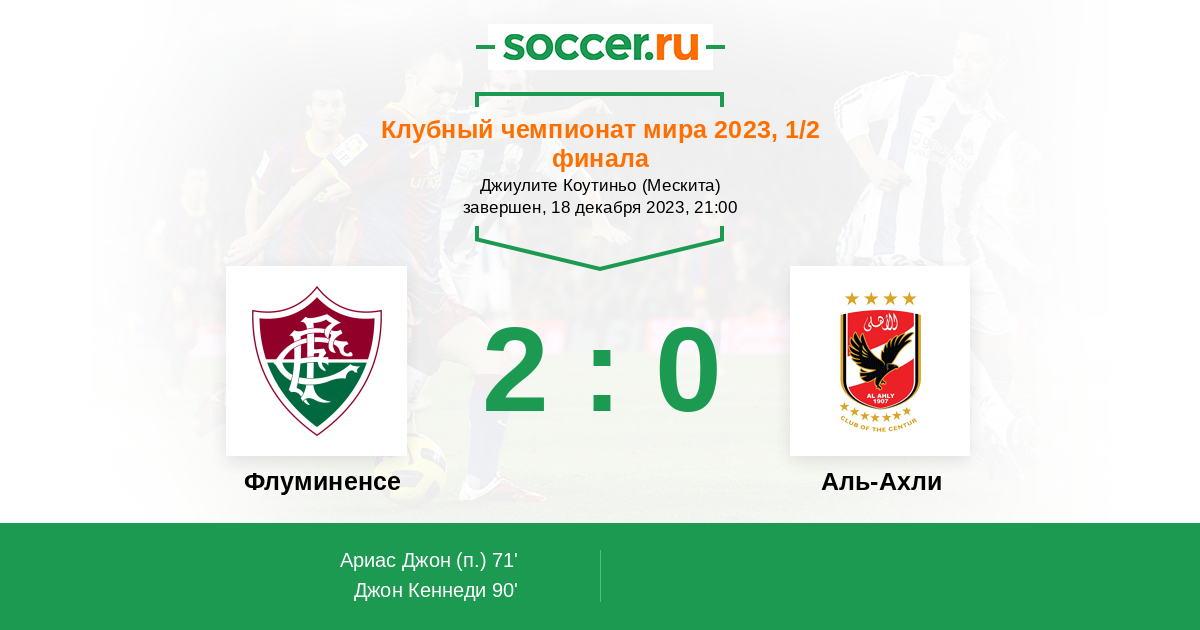 Протокол матча Флуминенсе против Аль-Ахли
