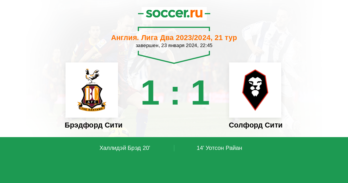 Протокол матча Брэдфорд Сити против Солфорд Сити