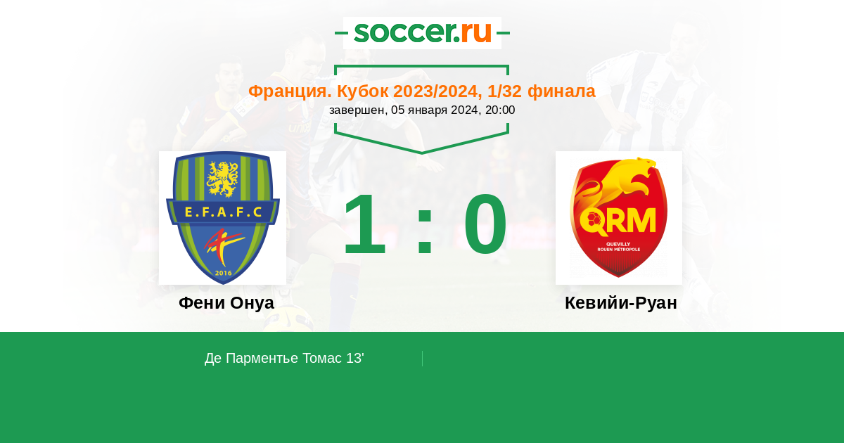 Протокол матча Фени Онуа против Кевийи-Руан