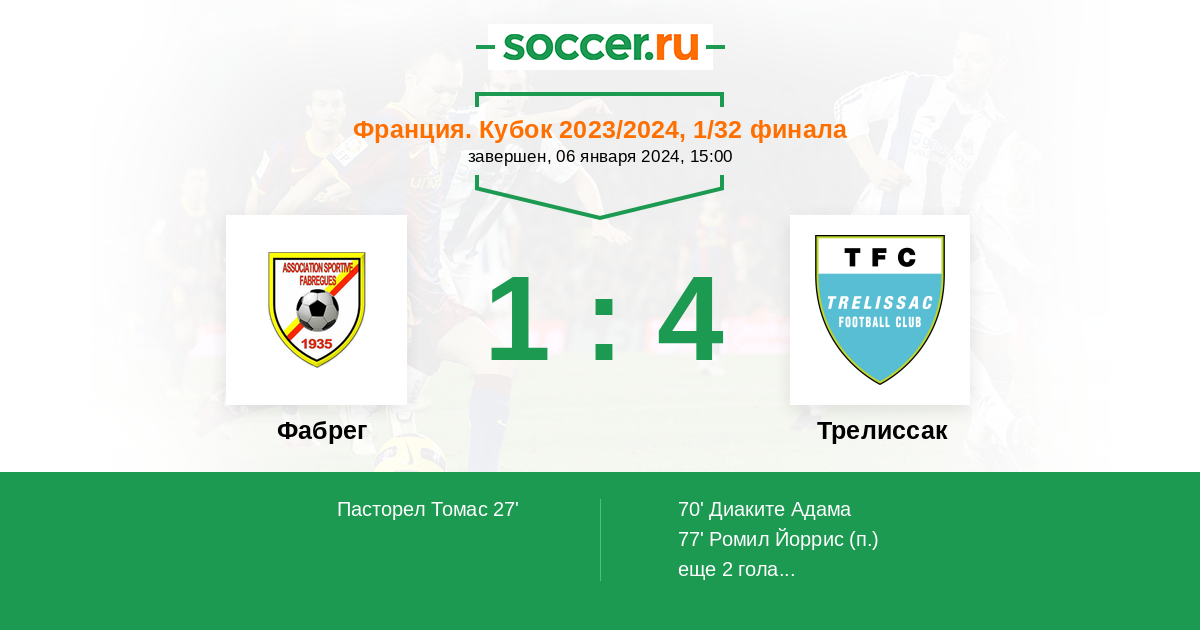 Протокол матча Фабрег против Трелиссак