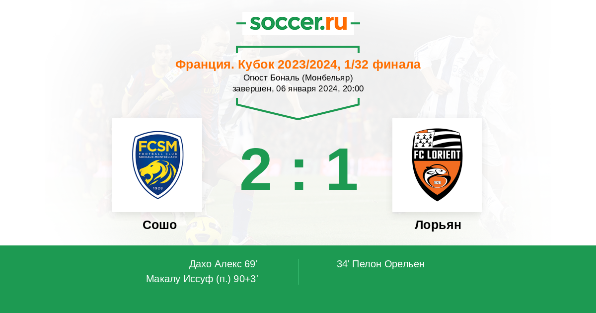 34' (0:1) Пелон Орельен (3) (Ле Брис Тео (11))