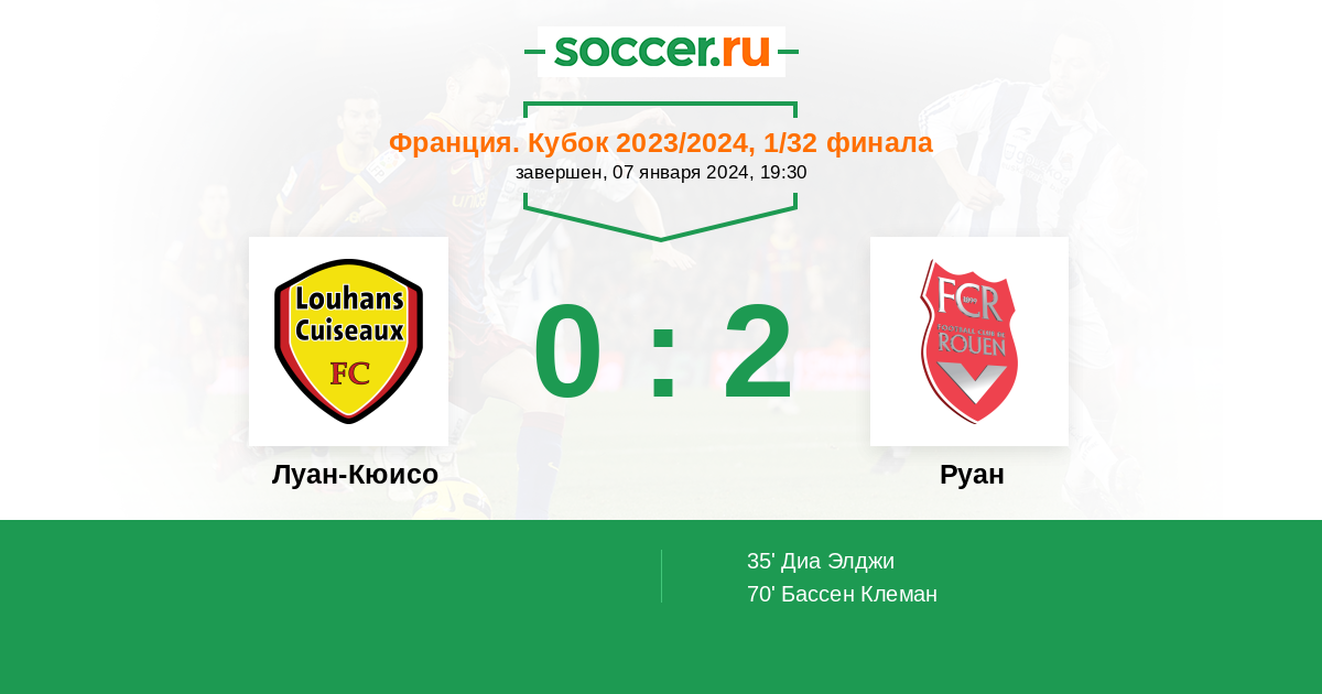 Протокол матча Луан-Кюисо против Руан