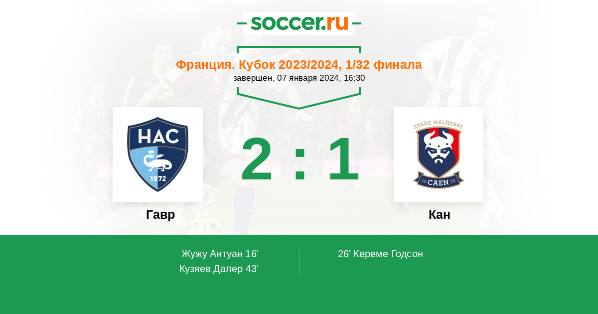 Протокол матча Гавр против Кан