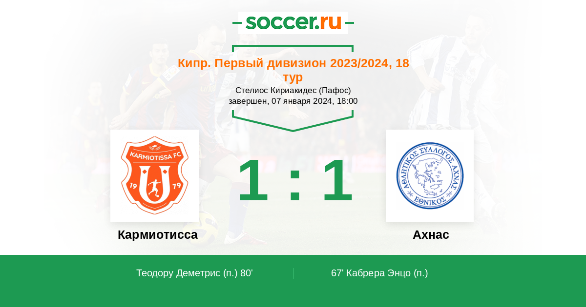 Протокол матча Кармиотисса против Ахнас
