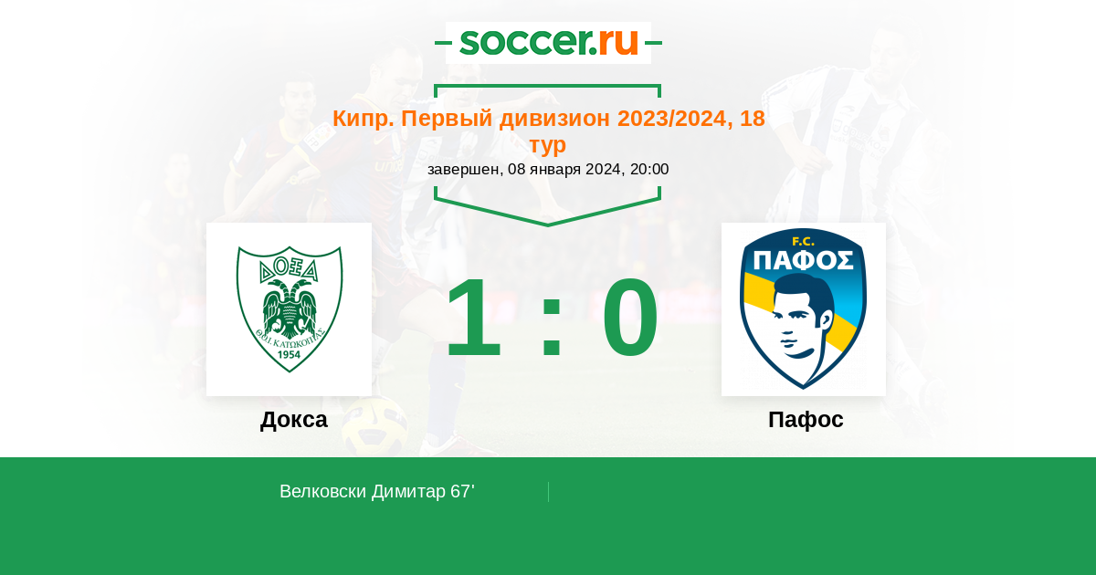 Протокол матча Докса против Пафос