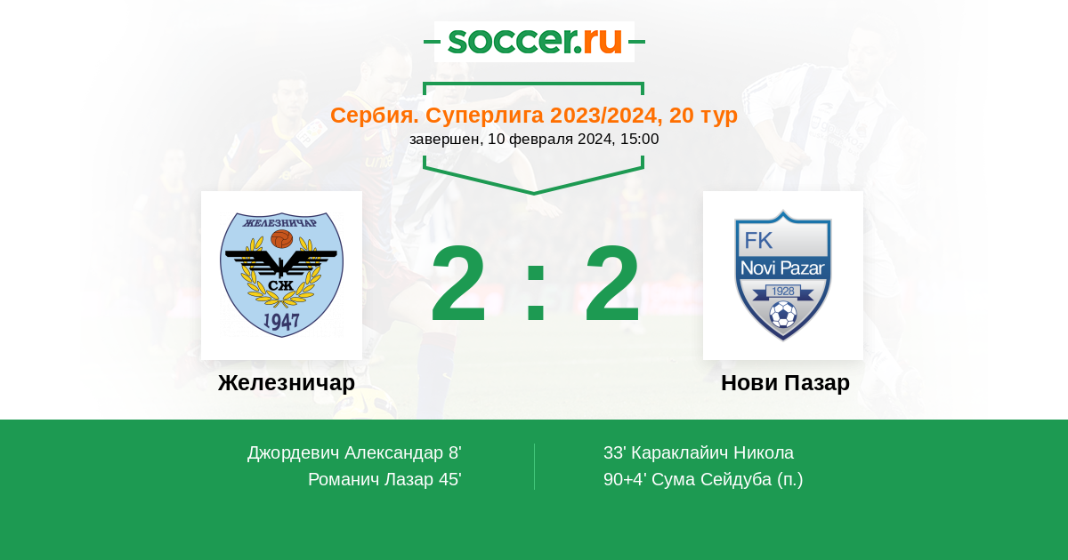 Протокол матча Железничар против Нови Пазар