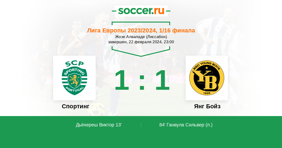 Протокол матча Спортинг против Янг Бойз