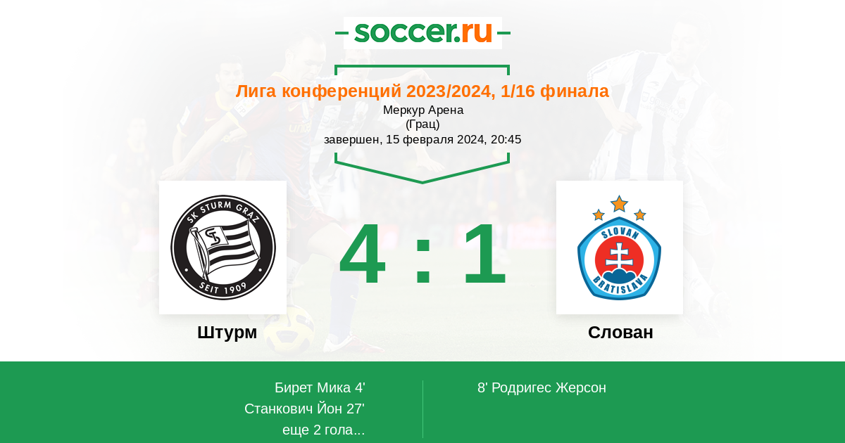 Протокол матча Штурм против Слован