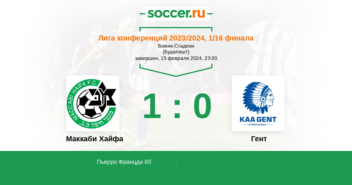 Протокол матча Маккаби Хайфа против Гент