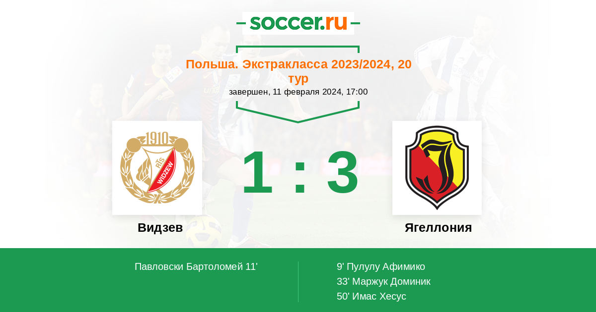 Протокол матча Видзев против Ягеллония