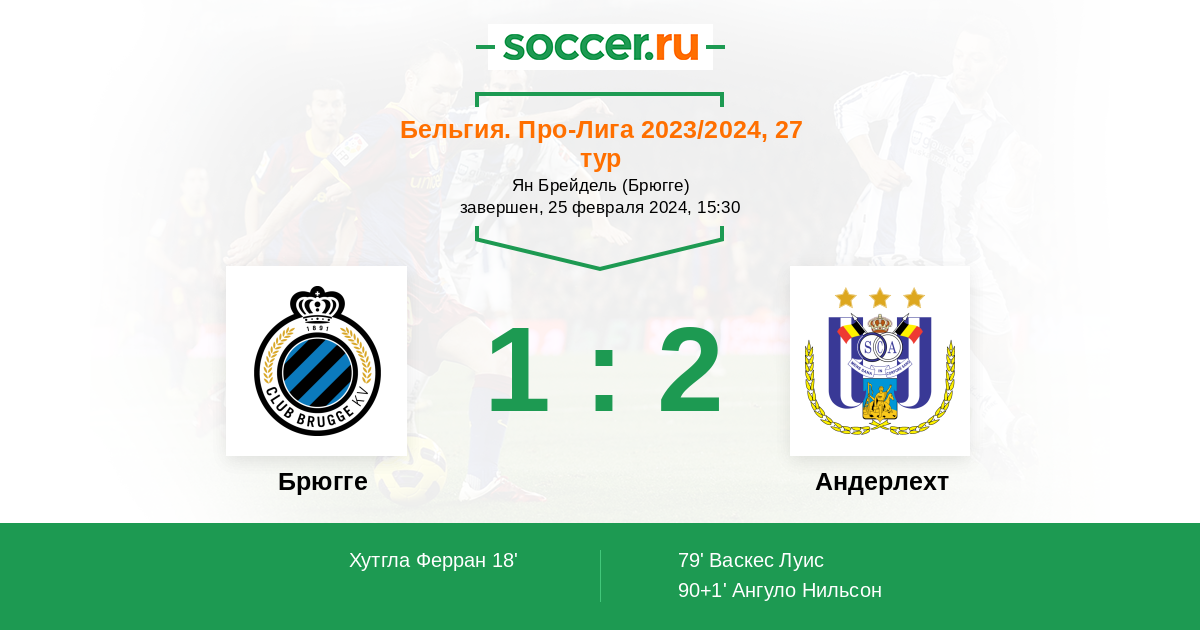Протокол матча Брюгге против Андерлехт