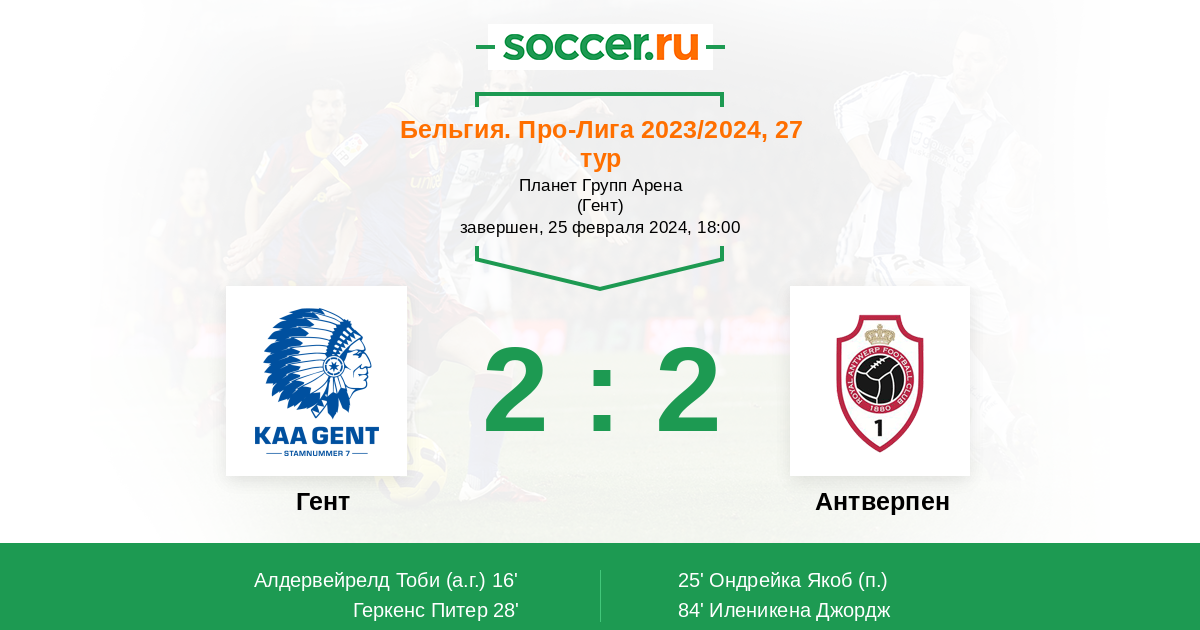 16' (1:0) Автогол Алдервейрелд Тоби (23)