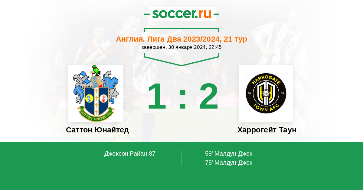 Протокол матча Саттон Юнайтед против Харрогейт Таун