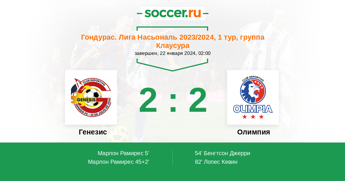 Протокол матча Генезис против Олимпия