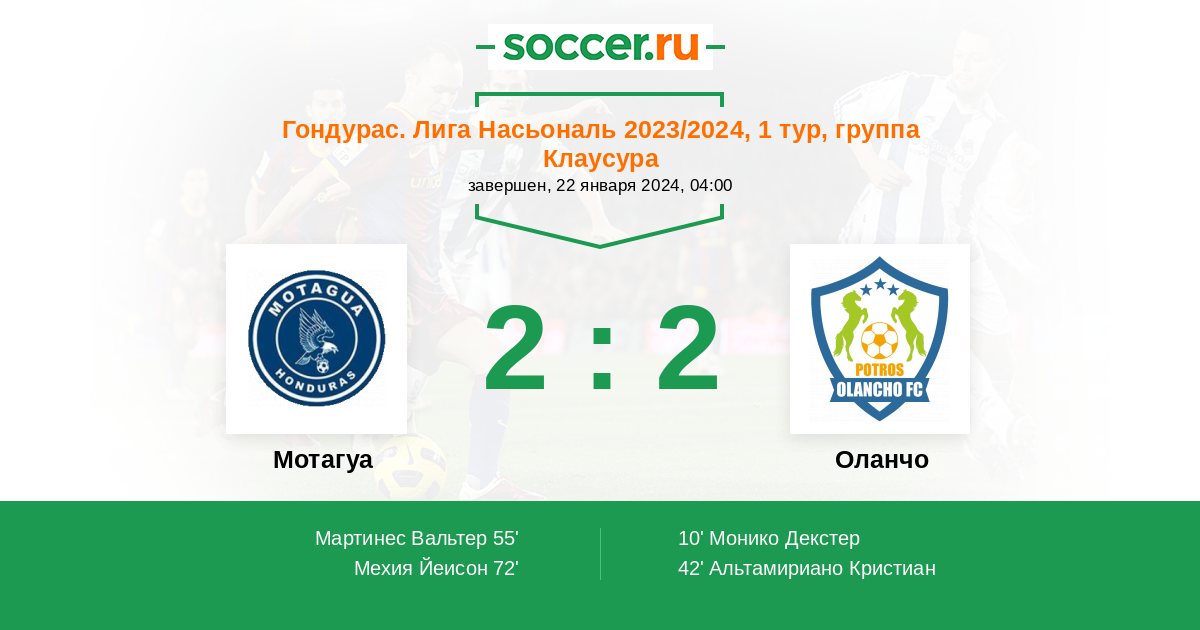 Протокол матча Мотагуа против Оланчо