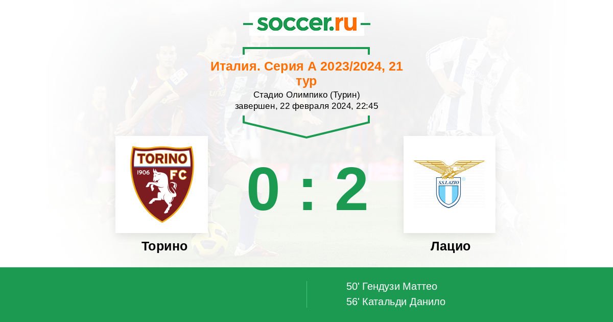 Протокол матча Торино против Лацио