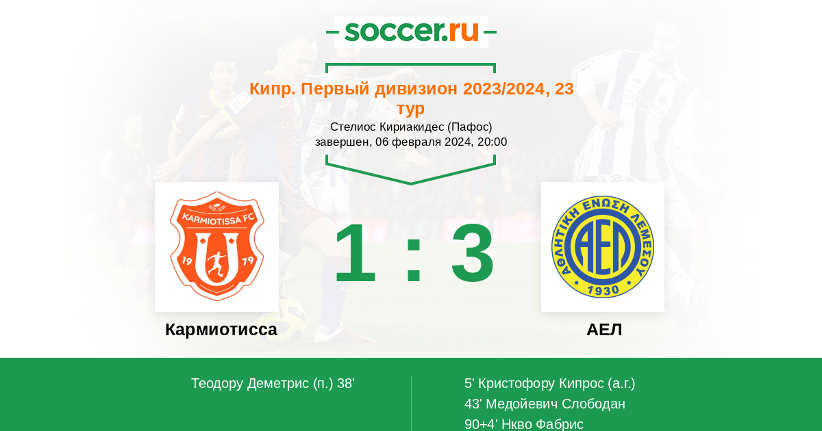 5' (0:1) Автогол Кристофору Кипрос (27)