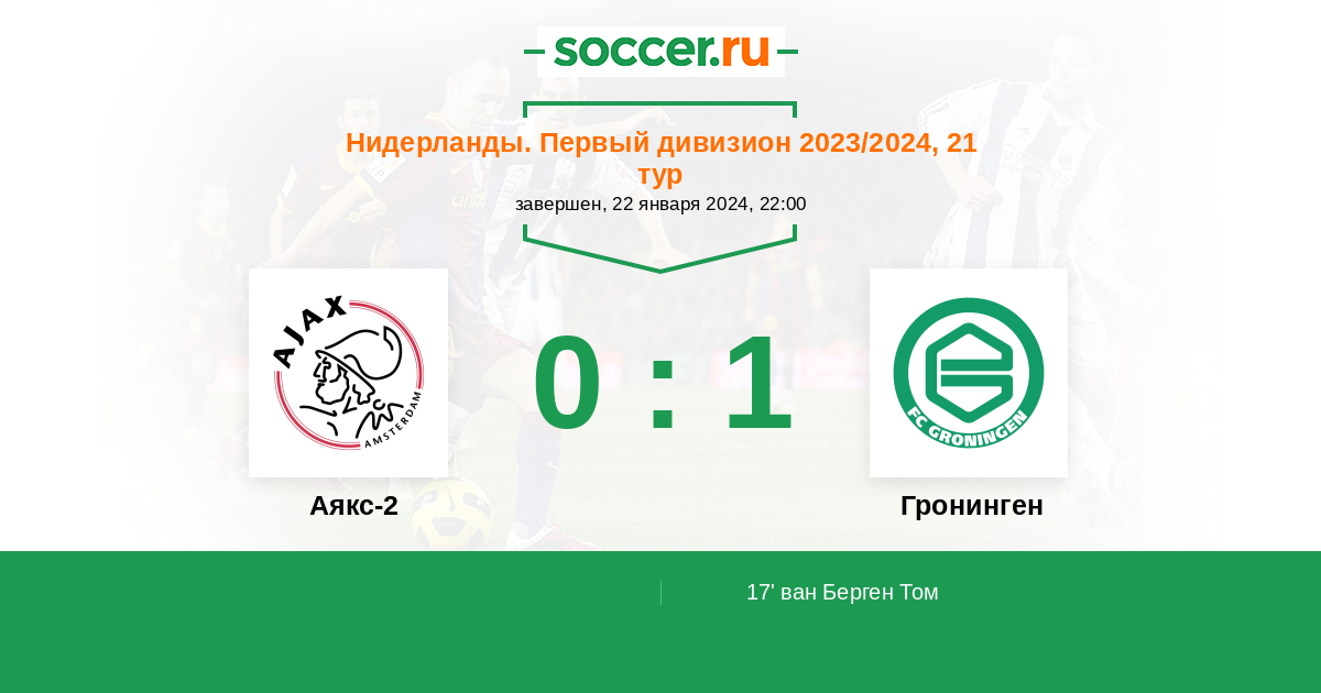 17' (0:1) ван Берген Том (25) (Постема Романо (29))