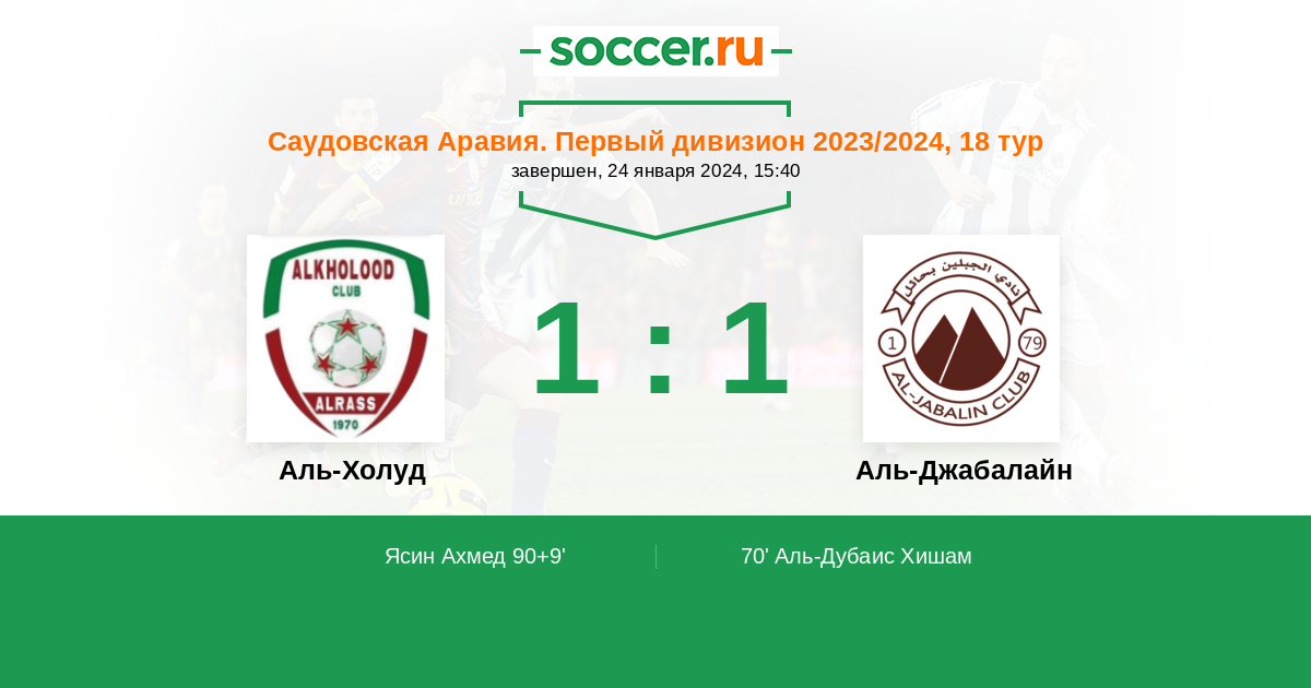 Протокол матча Аль-Холуд против Аль-Джабалайн