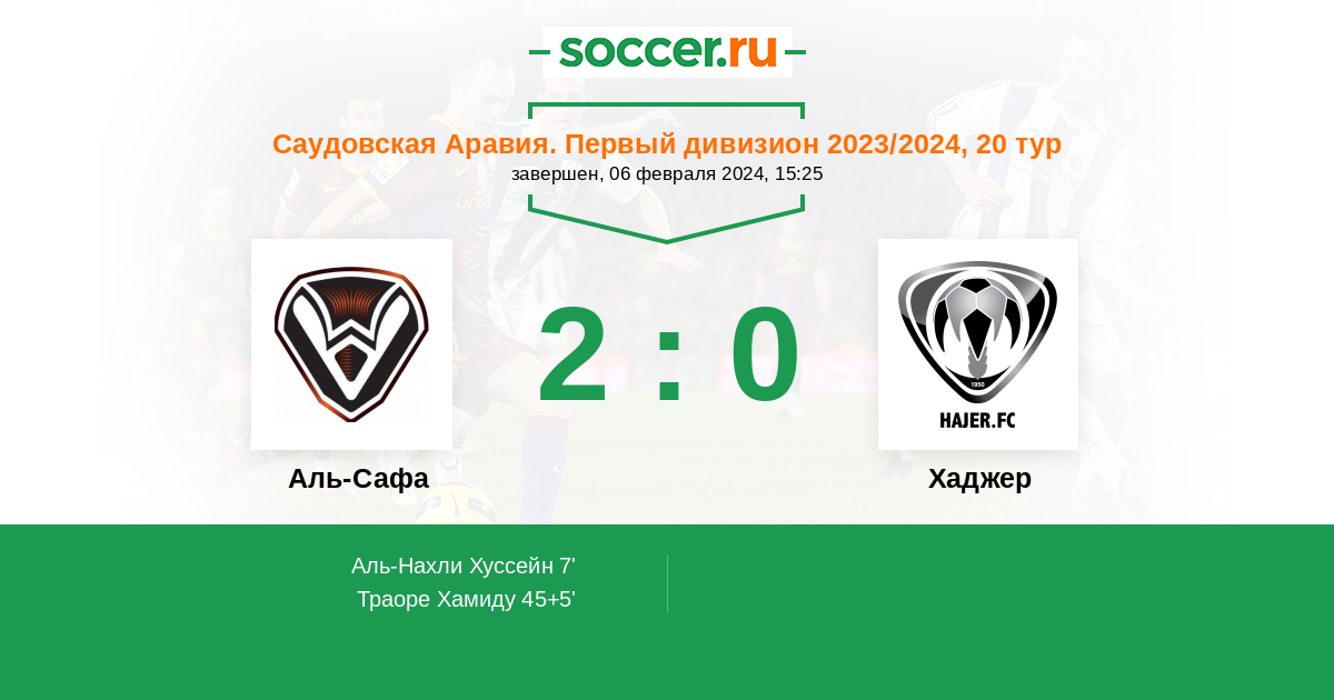 Протокол матча Аль-Сафа против Хаджер