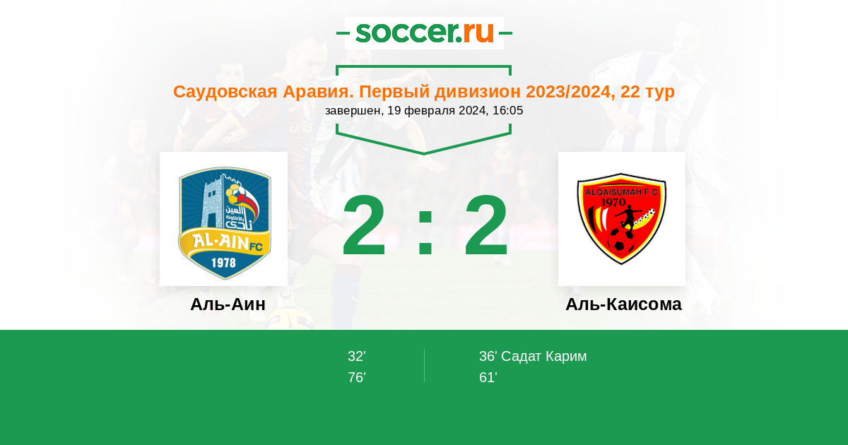 Протокол матча Аль-Аин против Аль-Каисома
