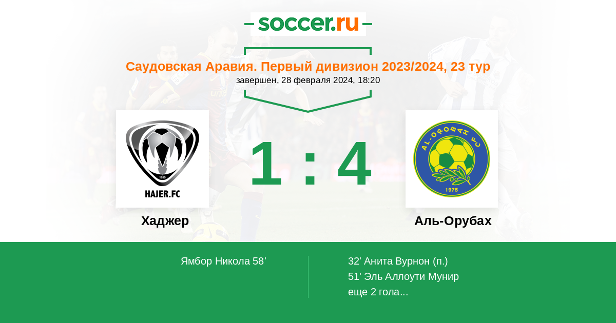 Протокол матча Хаджер против Аль-Оруба