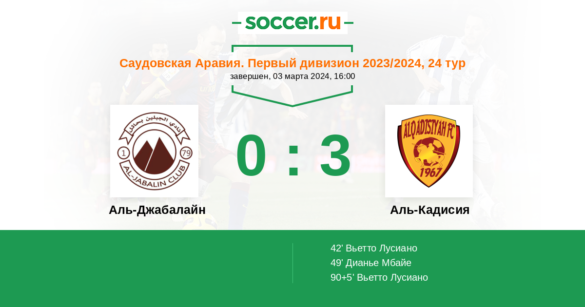 Протокол матча Аль-Джабалайн против Аль-Кадисия