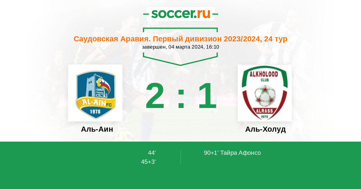 Протокол матча Аль-Аин против Аль-Холуд