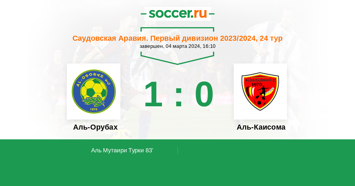 Протокол матча Аль-Оруба против Аль-Каисома
