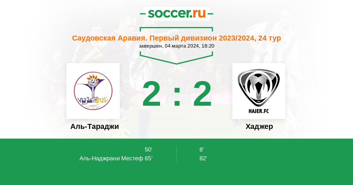 Протокол матча Аль-Тараджи против Хаджер