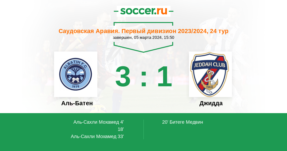 Протокол матча Аль-Батен против Джидда
