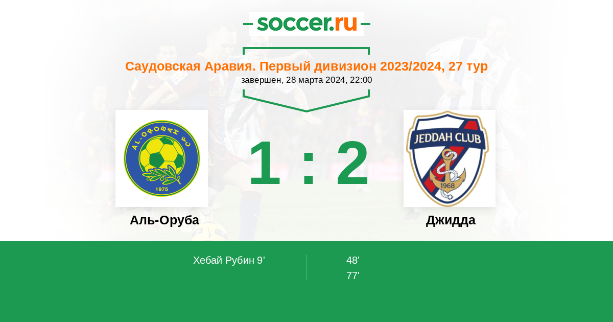Протокол матча Аль-Оруба против Джидда
