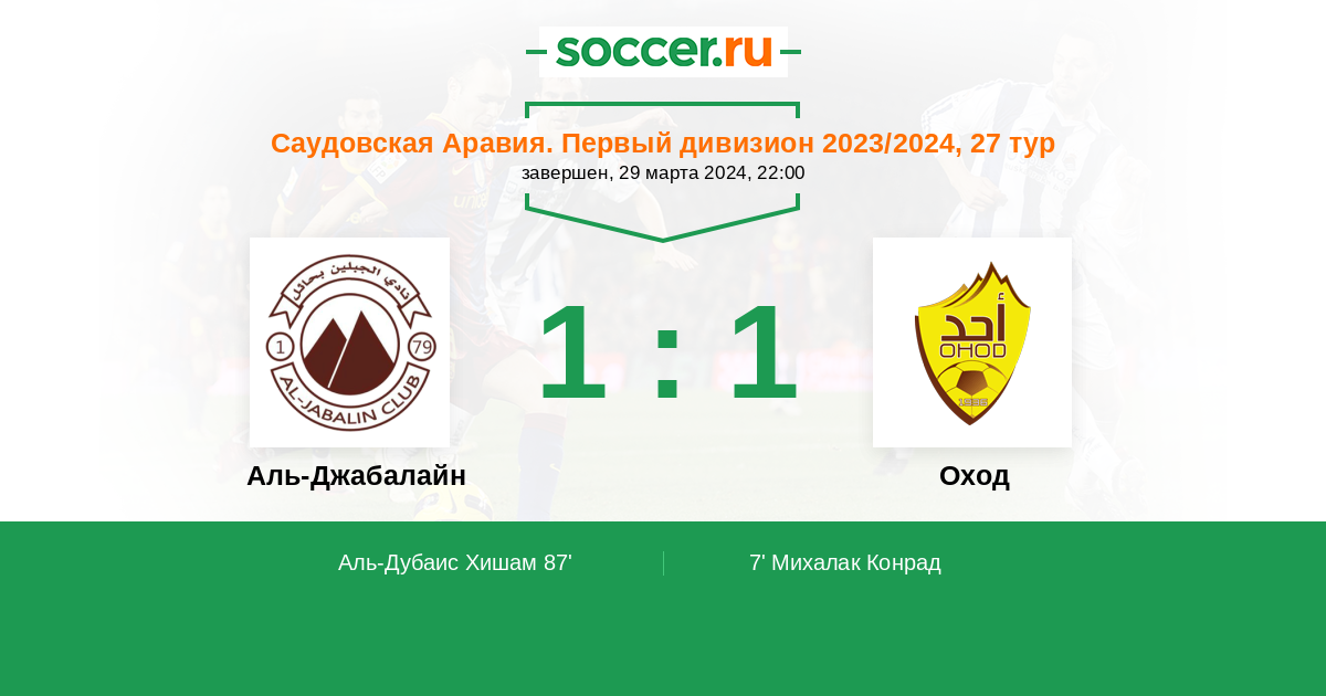 Протокол матча Аль-Джабалайн против Оход