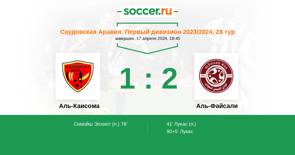 Протокол матча Аль-Каисома против Аль-Файсали
