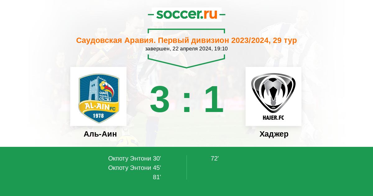 Протокол матча Аль-Аин против Хаджер