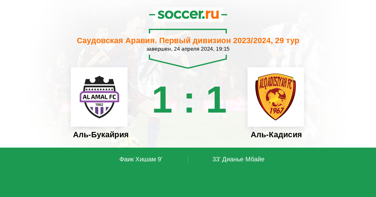 Протокол матча Аль-Букайрия против Аль-Кадисия