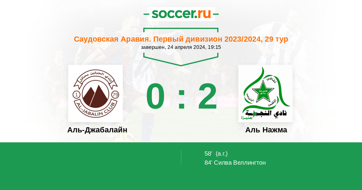Протокол матча Аль-Джабалайн против Аль Нажма