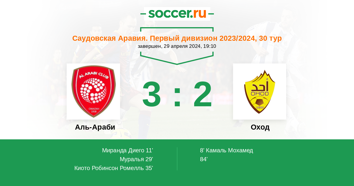 Протокол матча Аль-Араби против Оход