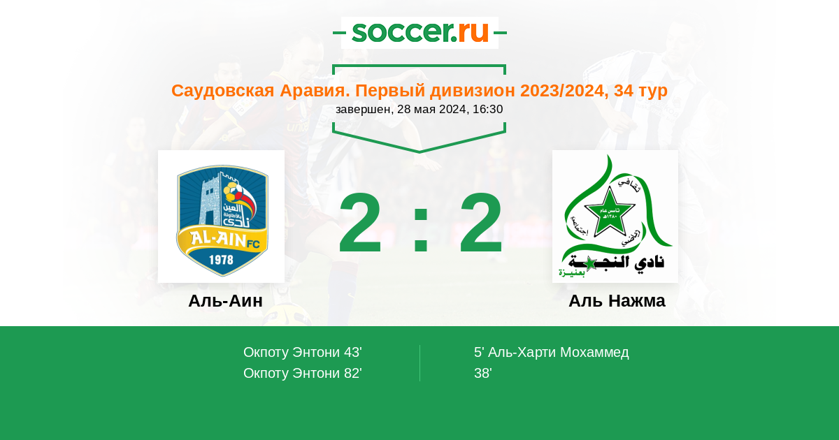 Протокол матча Аль-Аин против Аль Нажма