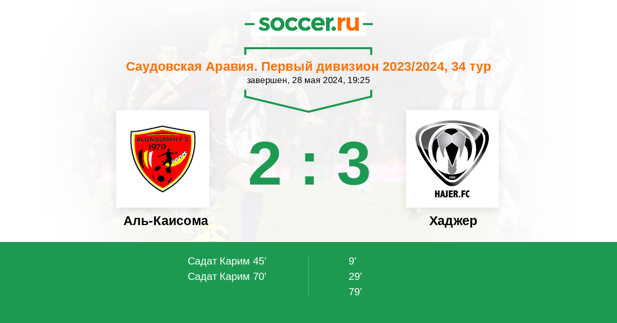 Протокол матча Аль-Каисома против Хаджер