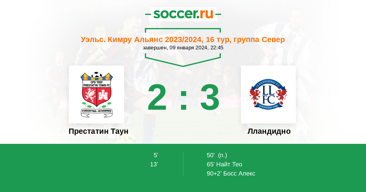 Протокол матча Престатин Таун против Лландудно