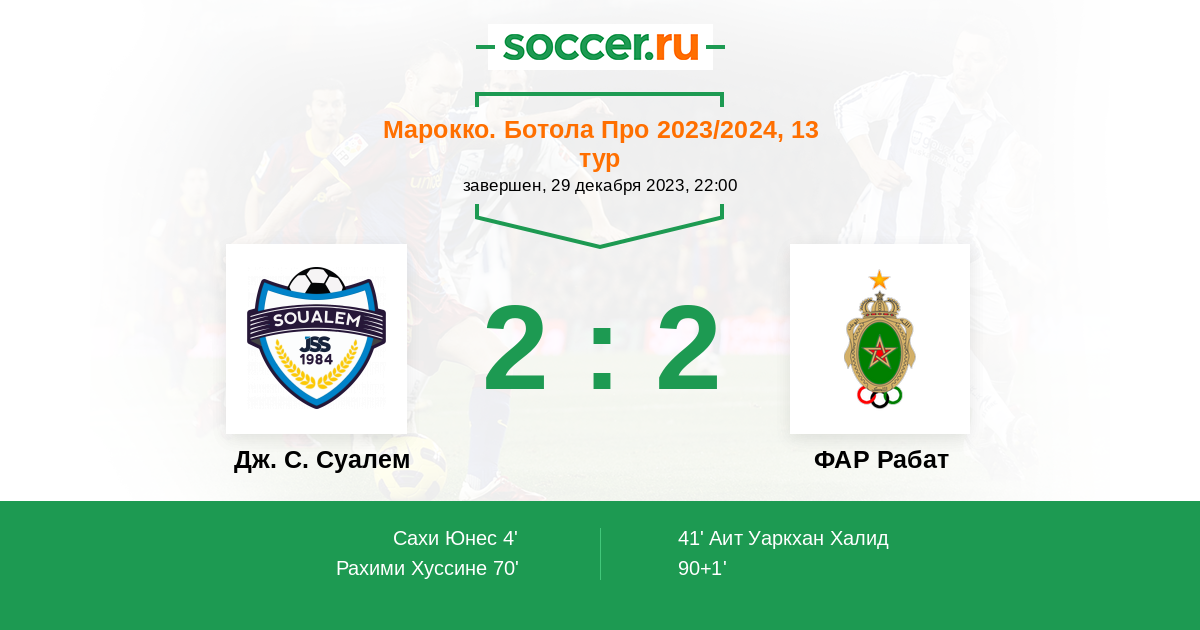 Протокол матча Дж. С. Суалем против ФАР Рабат