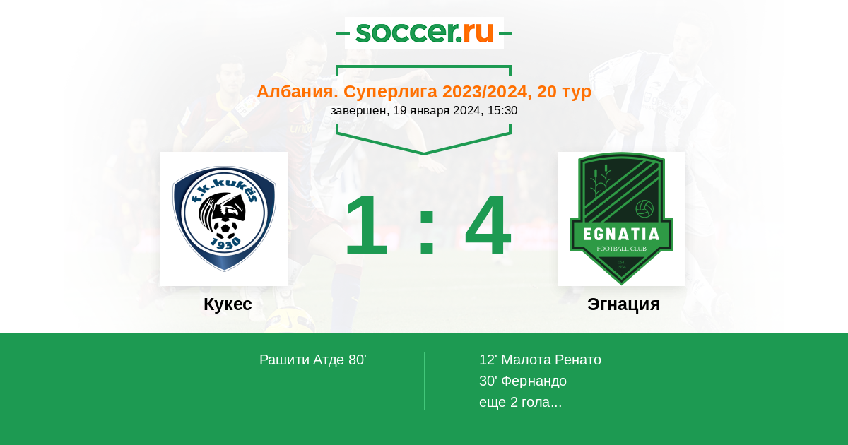 Протокол матча Кукес против Эгнация