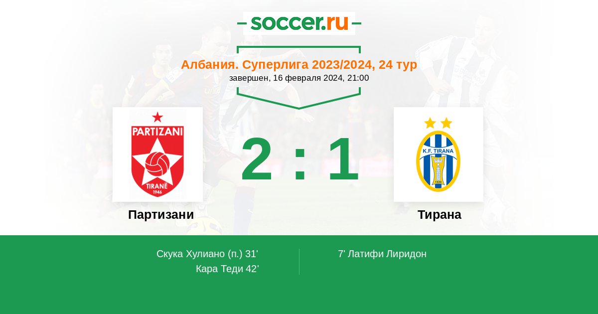 Протокол матча Партизани против Тирана