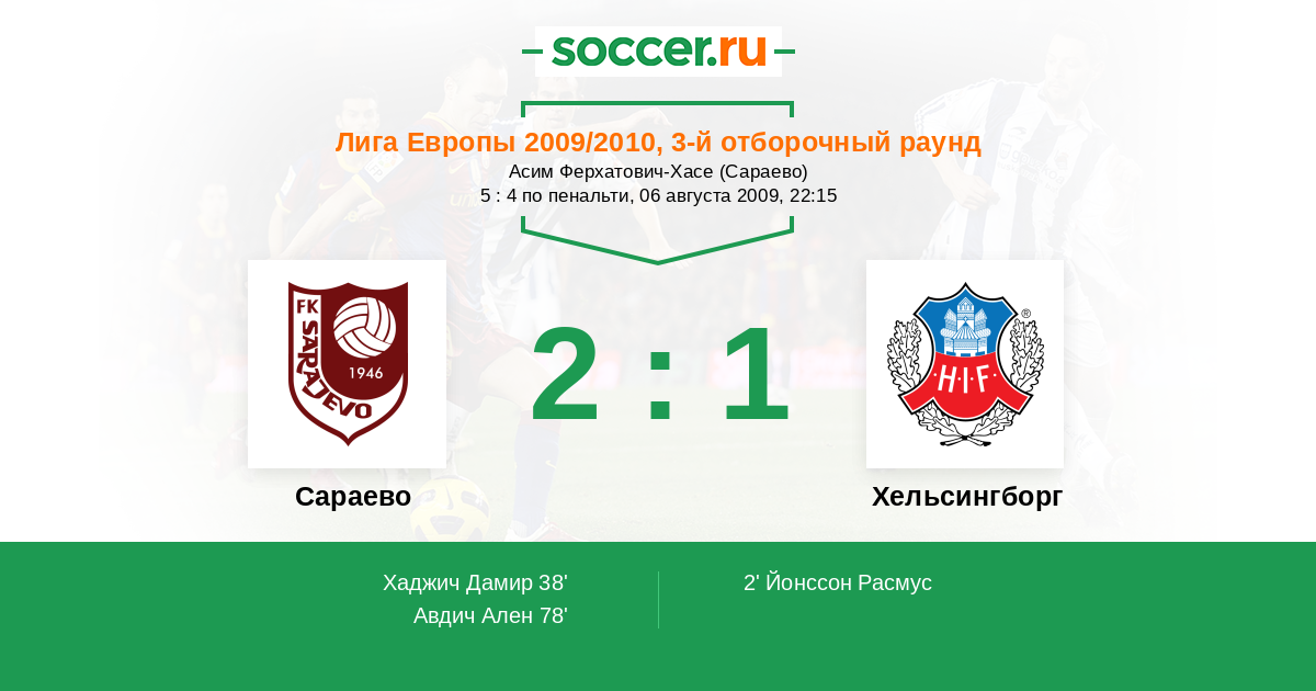 Протокол матча Сараево против Хельсингборг
