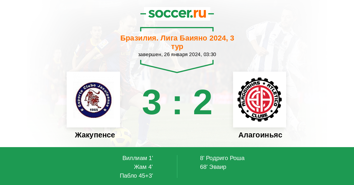 Протокол матча Жакупенсе против Алагоиньяс