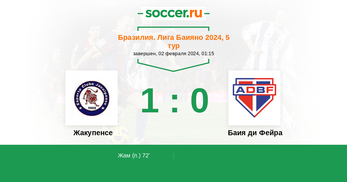 Протокол матча Жакупенсе против Баия ди Фейра