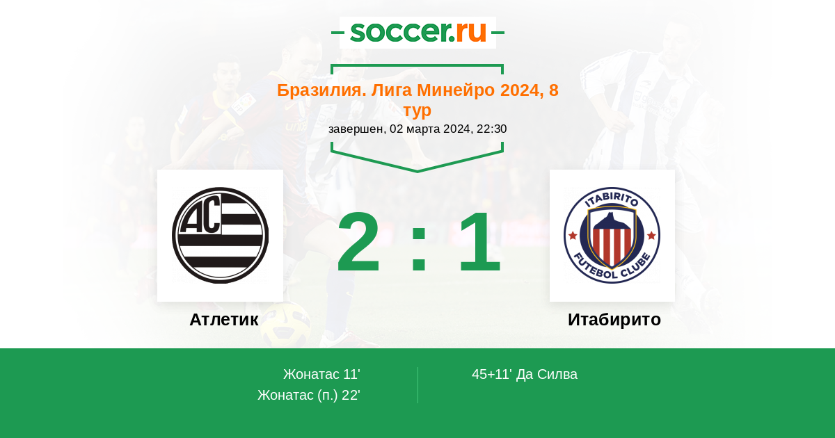Протокол матча Атлетик против Итабирито